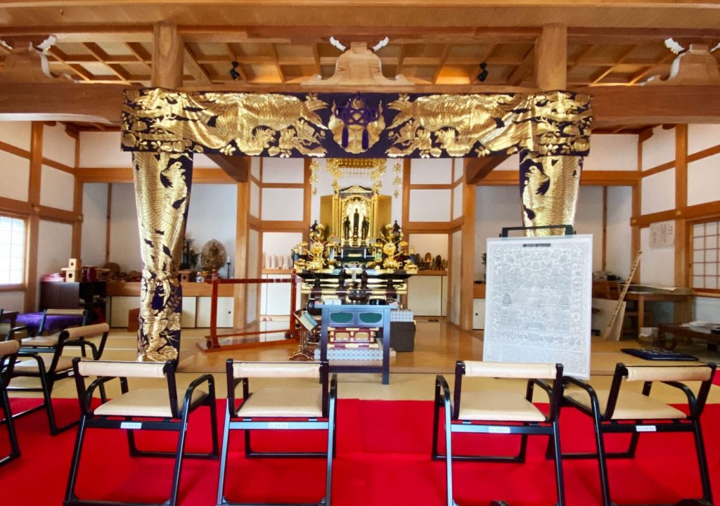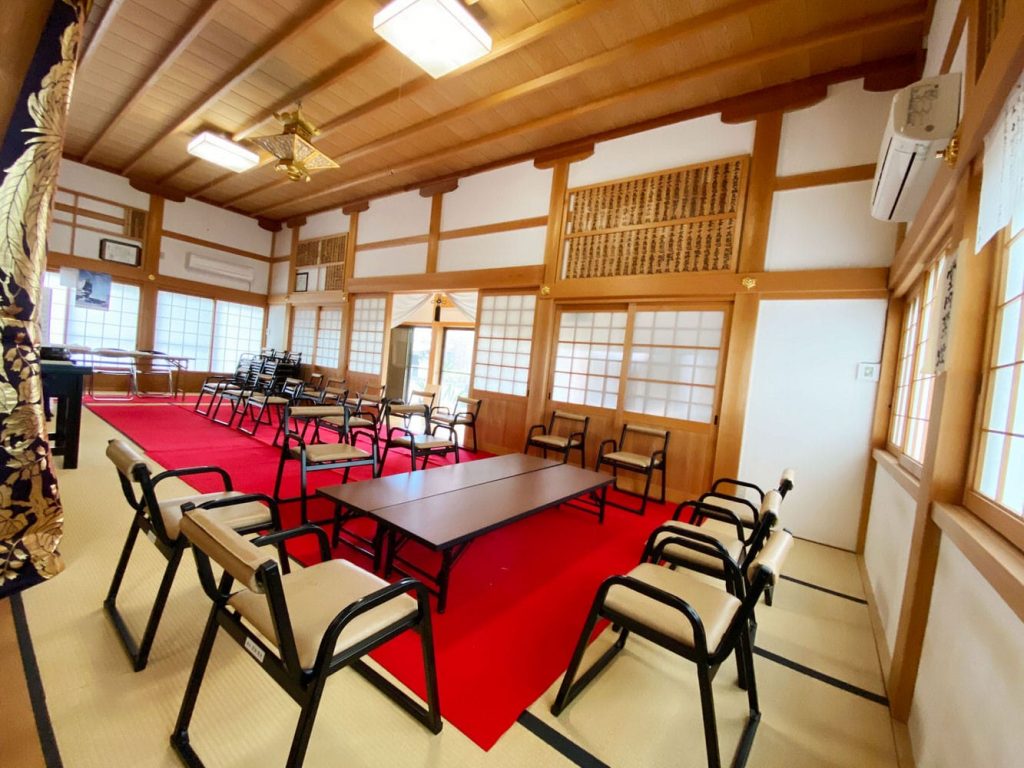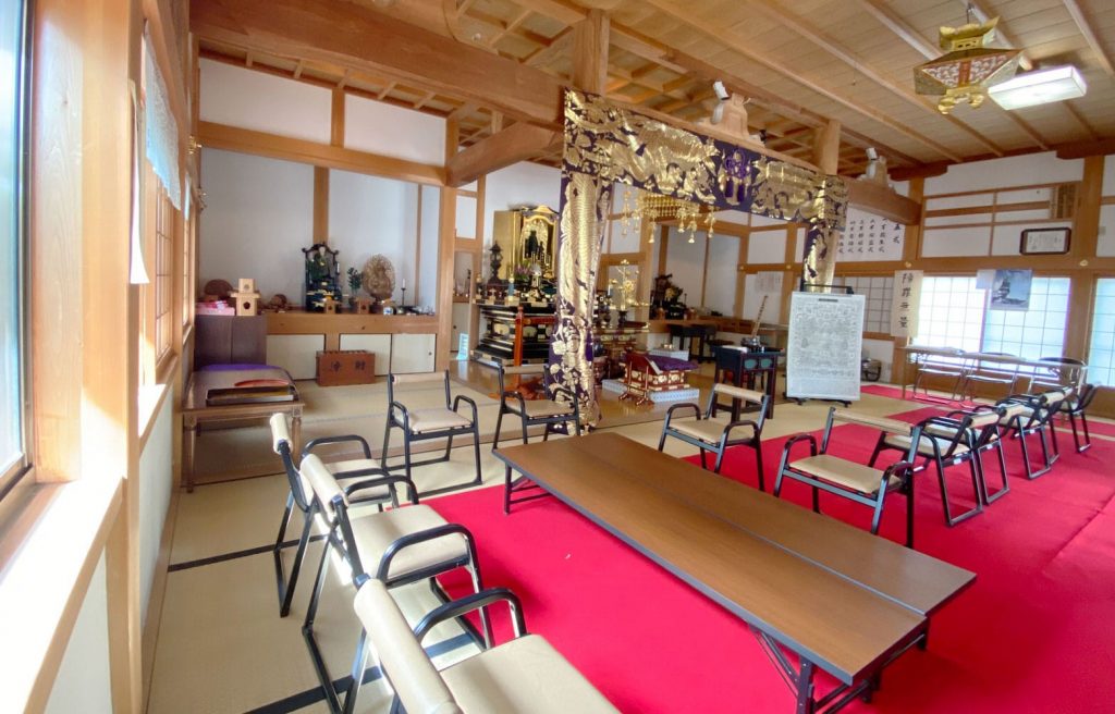 高い天井、畳、線香の香り。本堂に入ると肩の力が自然と抜けて、ご自身の作業に集中いただけることでしょう。ひと息つくときは縁でひなたぼっこするのもおすすめです。